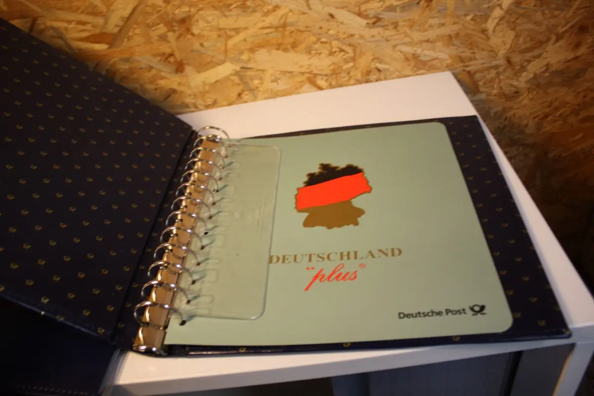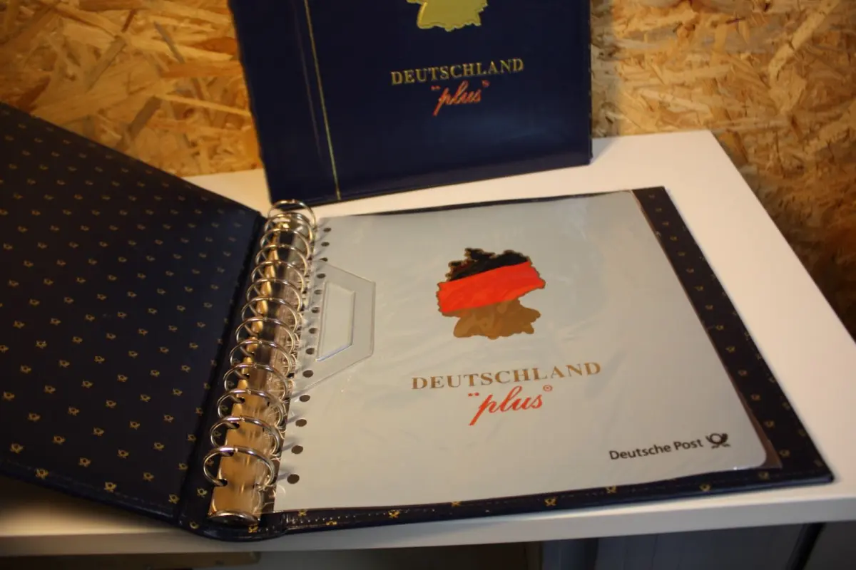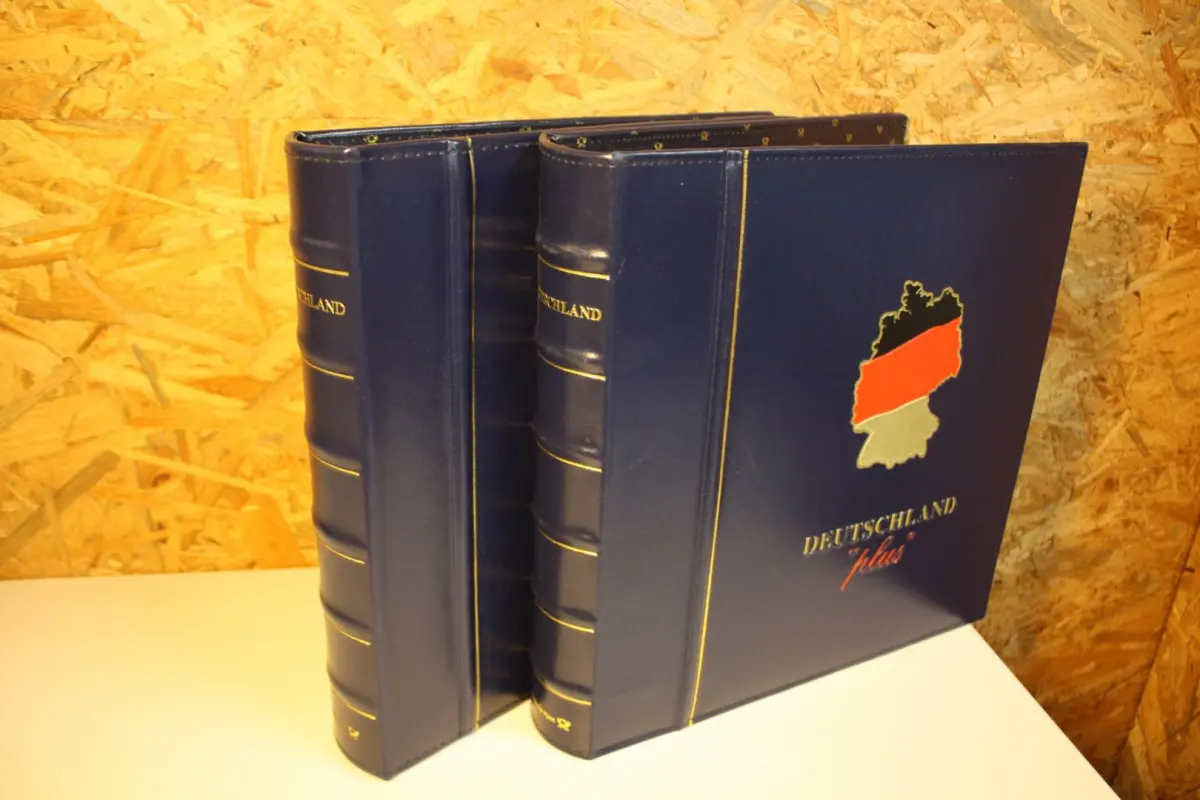 leere gut erhaltene Ringbinder + Schuber mit Gebrauchsspuren, mit Aufdruck Deutschland Plus, inkl. Blattheber, 13 Ring passend auch für Leuchtturm Vordrucke, 2 Stück,