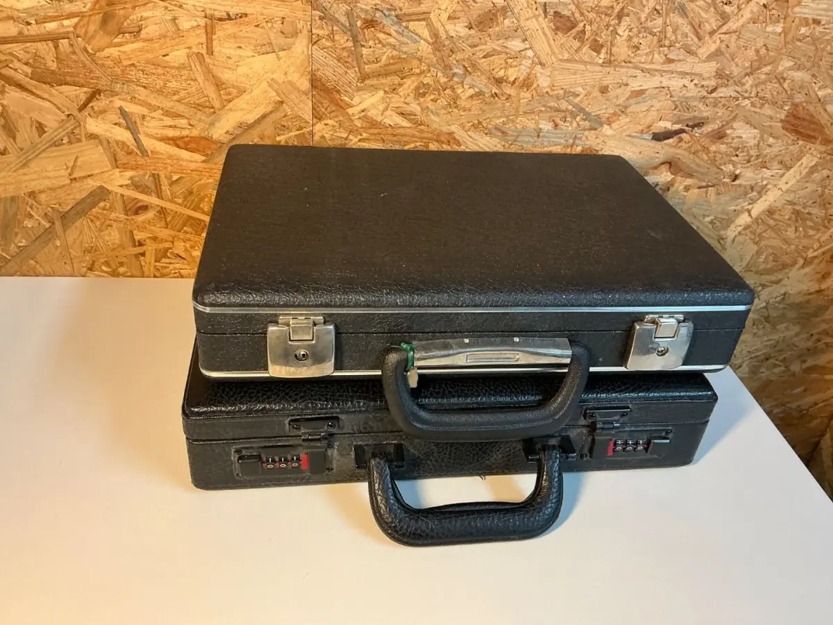 leere gut erhaltene Koffer mit Einlageblättern, Größe außen: 25x36cm