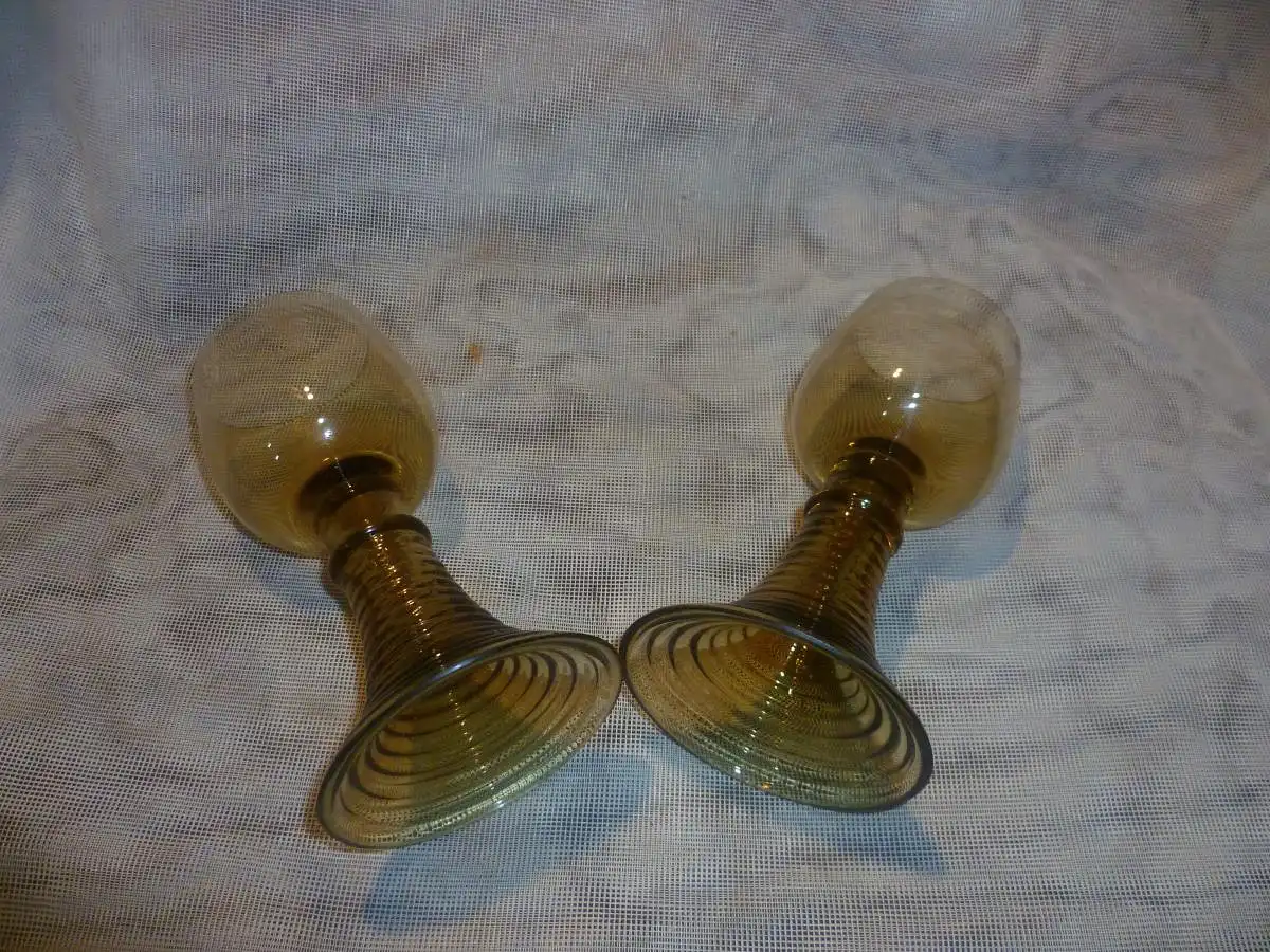 2 kleine Thersienthal Römer Höhe nur:14cm Bernsteinfarben Jugendstil um 1900 für Wein Likör selten in dieser Größe zu Finden!
