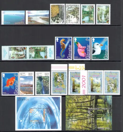 2001 EUROPA CEPT, kompletter Jahrgang 107 Werte + 2 Zettel - postfrisch **
