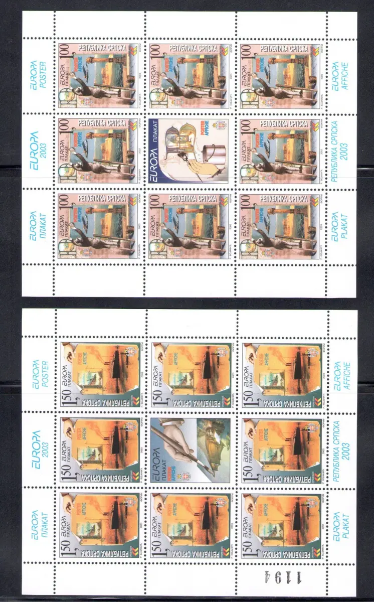 2003 EUROPA CEPT Bosnien Serbien Nr. 2 Kleinblätter mit 8 Werten, Plakat, postfrisch **