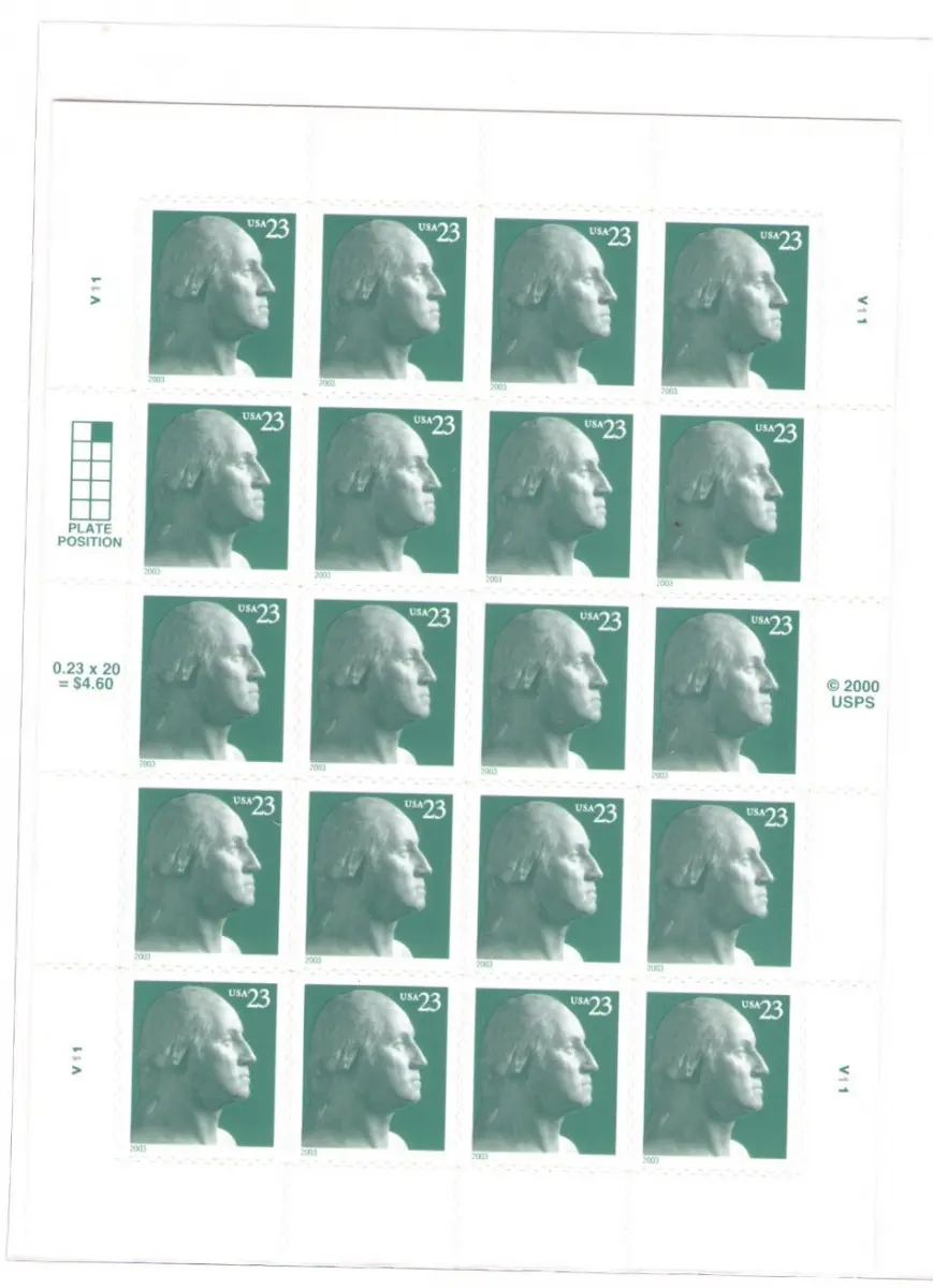 2003 USA, Kleinbogen 20 Werte MNH ** George Washington Ordentliche Serie Nr. 3931