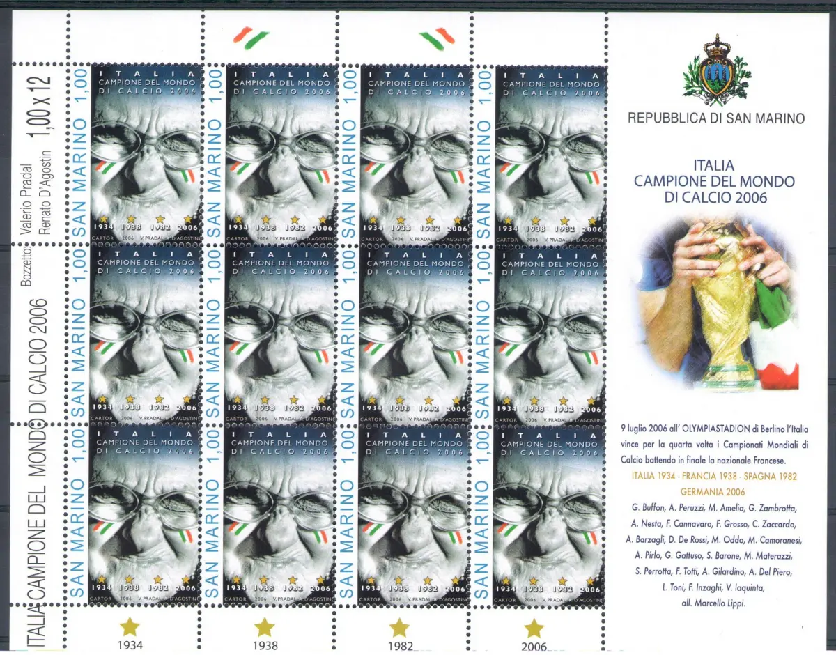 2006 San Marino Fußball-Weltmeisterschaften Minifoglio 12 val MNH **, es handelt sich um neue und perfekte Briefmarken, wie sie von der Republik San Marino ausgegeben wurden.