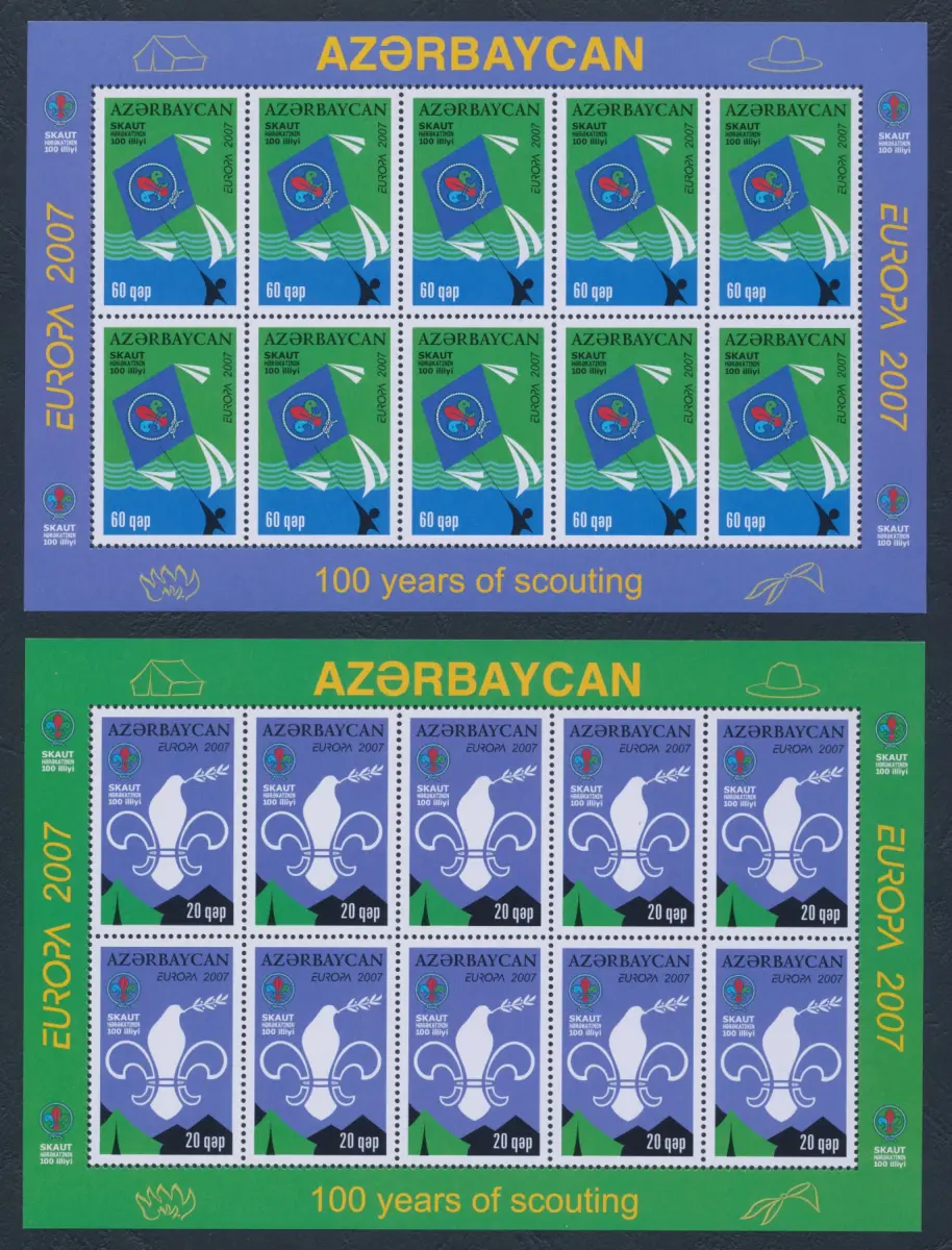 2007 EUROPA CEPT, Aserbaidschan, 2 Kleinblätter à 10er Serie, 100 Jahre Pfadfinderschaft, postfrisch ** ref grünes Album 17