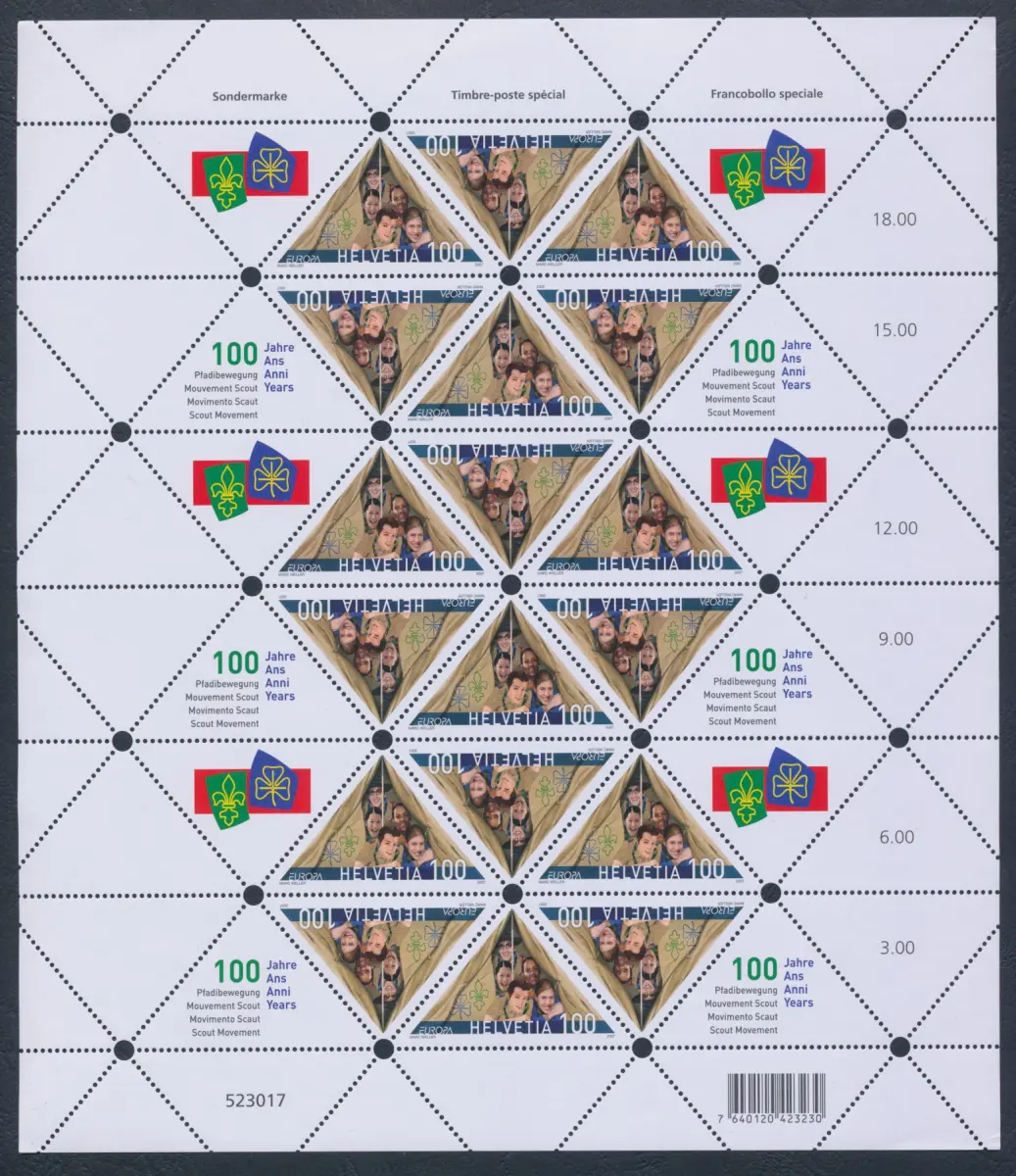 2007 EUROPA CEPT, Schweiz, Kleinbogen von 18, Thema Pfadfinder, postfrisch ** Europa Nr. 17