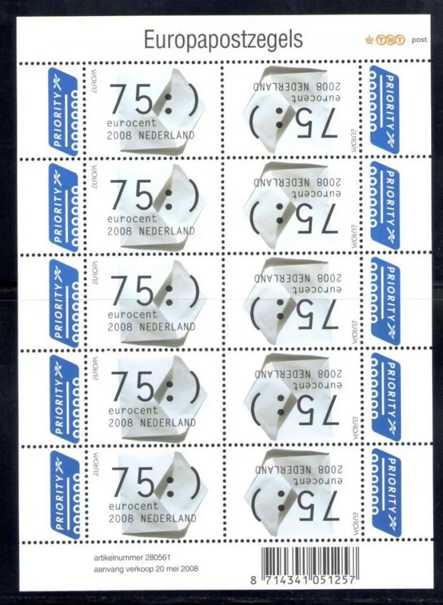2008 EUROPA CEPT Niederlande, 1 Kleinbogen mit 10 Werten, postfrisch**, es handelt sich um neue und einwandfreie Kleinblätter mit Original- und Vollgummi.