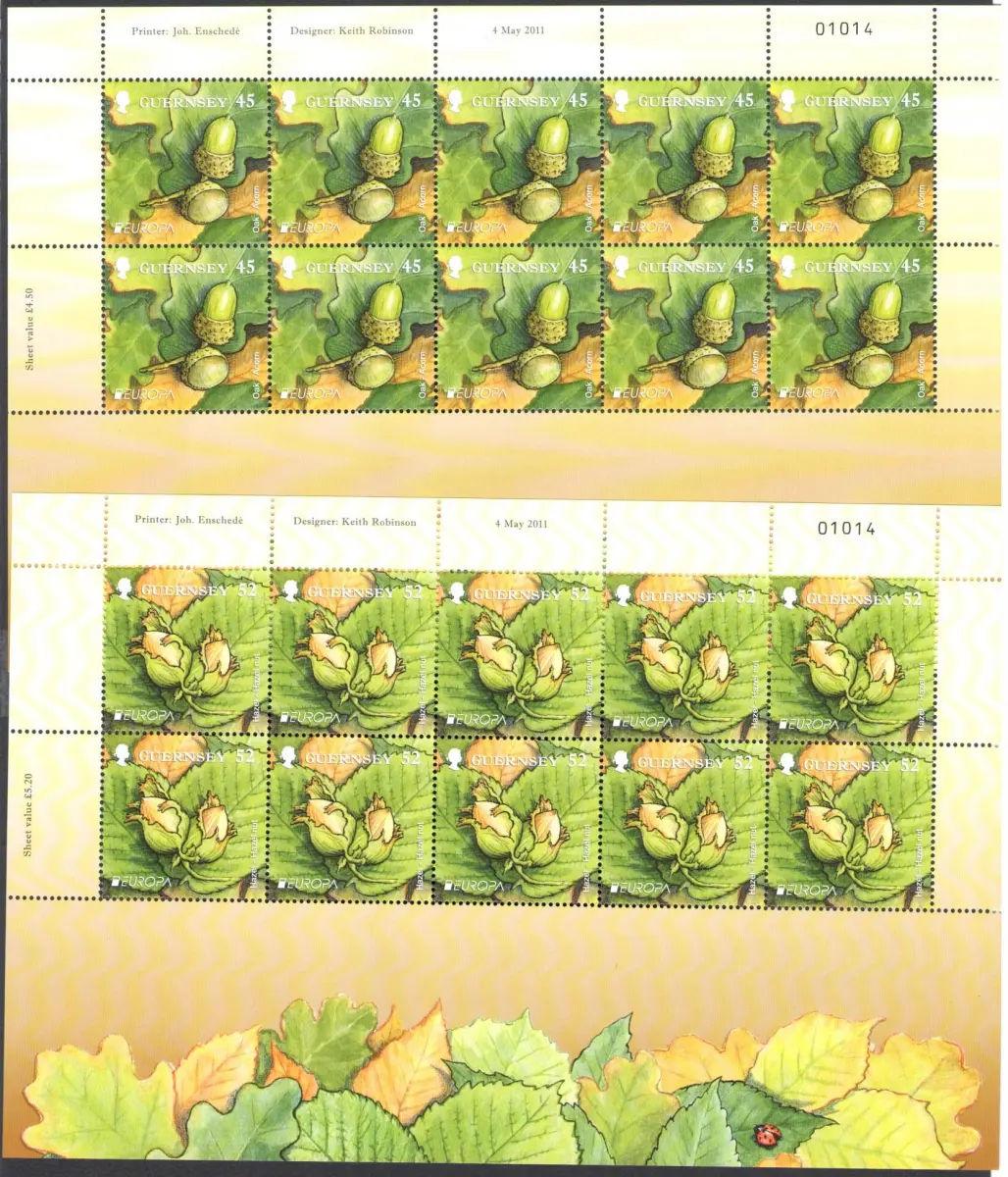 2011 EUROPA CEPT Guernsey 2 Miniblätter mit 10 Werten, Die Wälder, postfrisch **