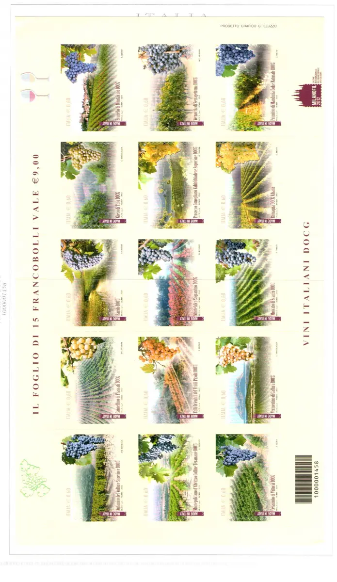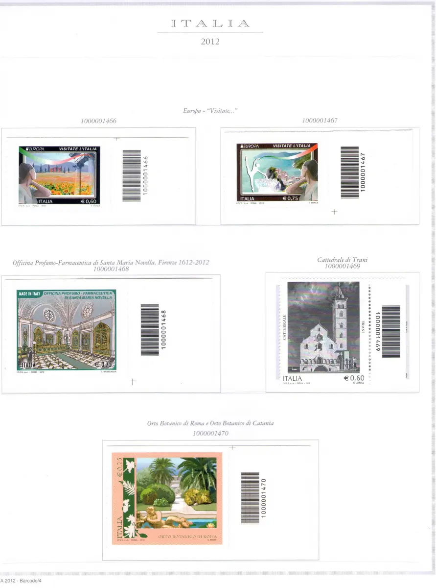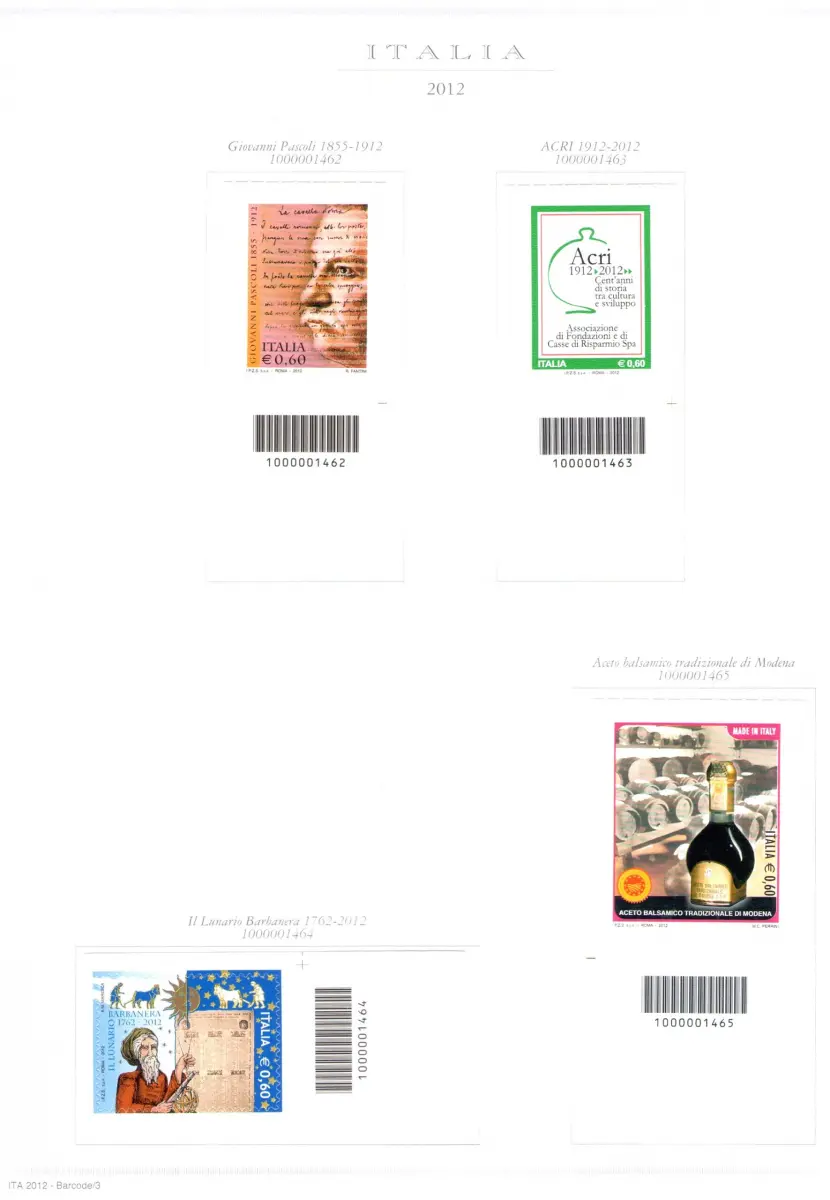 2012 Italienische Republik Barcodes kompletter Jahrgang 49 Werte + 2 Zettel (Weine + 150. Post) auf 13 Marineblättern