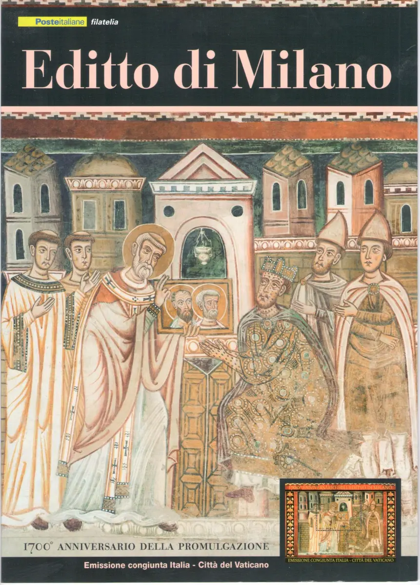 2013 Italien - Republik, Folder - Editto di Milano - MNH ** Inhalt: 1 neuer Zettel 1 Philateliekarte 1 Umschlag Erstausgabetag 1 Postkarte Es handelt sich um einen neuen und perfekten Ordner, der von der Post ausgegeben wurde.