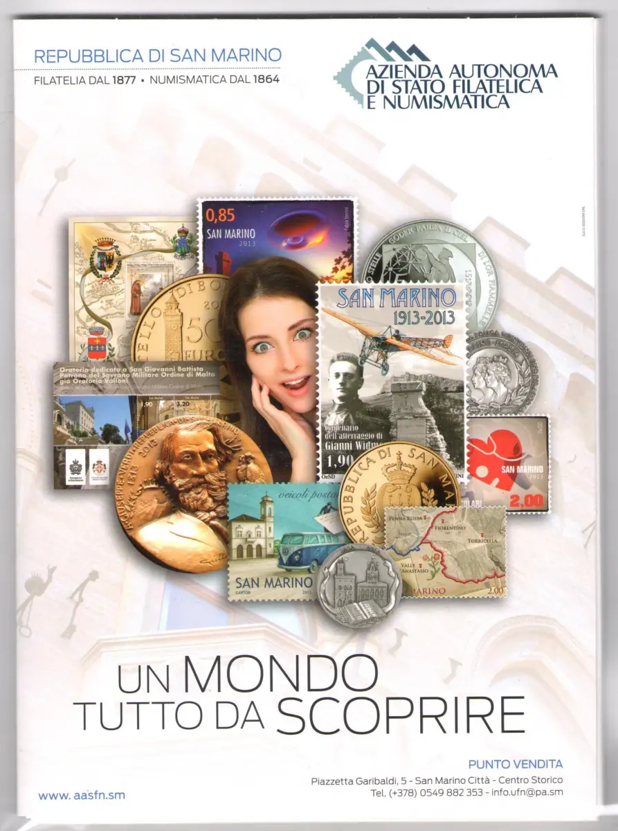 2013 San Marino, offizielles Jahresbuch der Philatelieausgaben, Briefmarken, Zettel - MNH ** WUNDERSCHÖNES Faltblatt MIT ALLEN AUSGABEN GEDRUCKT VON DER TYPOGRAFIE San Marinese