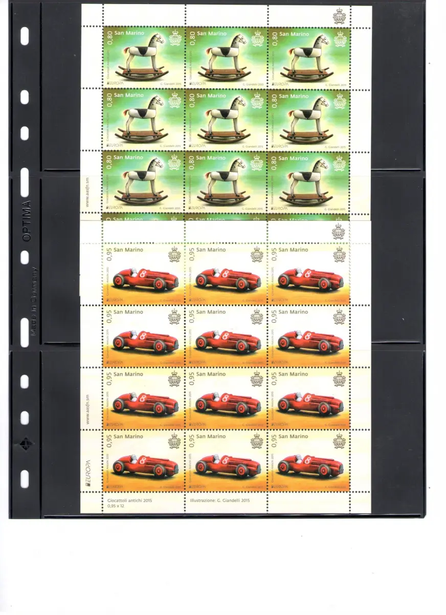 2015 EUROPA CEPT San Marino 2 Miniblätter mit 12 Werten Vintage Toys MNH **, neu und perfekt, Originalgummi und Vollgummi.