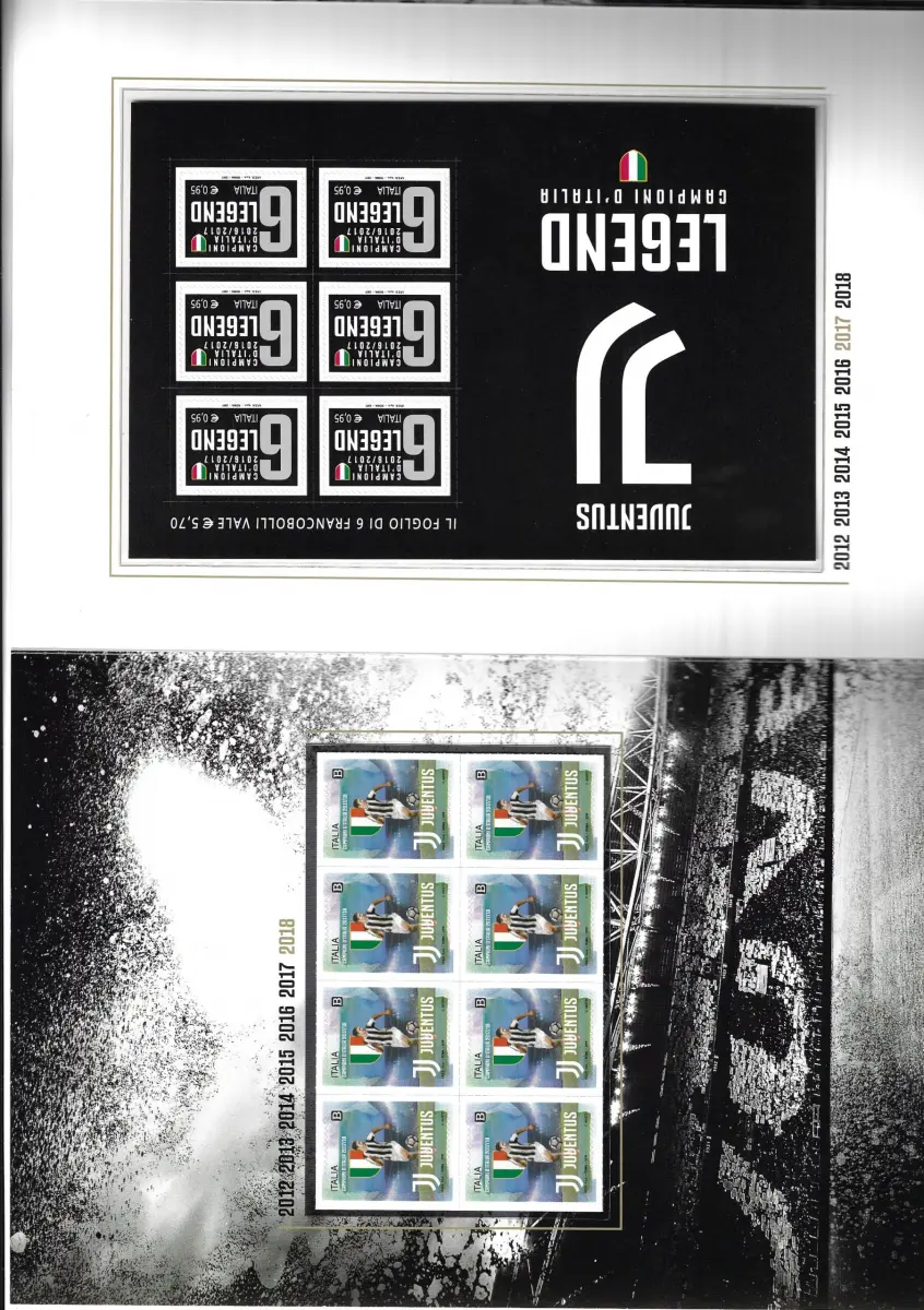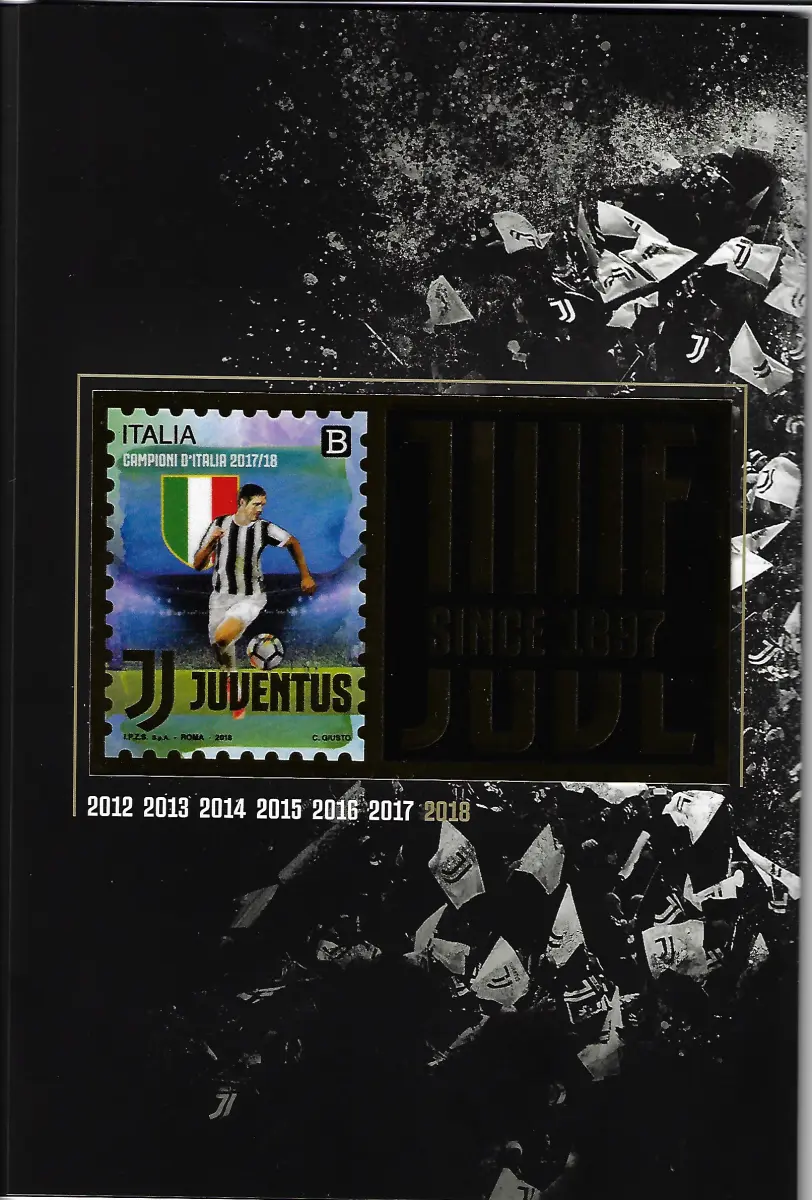 2018 Italien - THE BLACK AND WHITE STORIES JUVENTUS FOLDER 7 Minifogli dei briefolli Juventus champione di Italia 2012 2013 2014 2015 2016 2017 e 2018 + Folia d'oro
