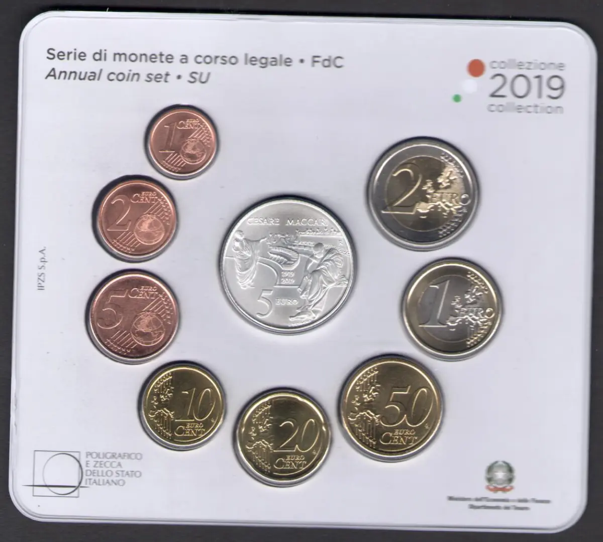 2019 Italien, gesetzliche Münzserie, Cesare Maccari, 9 Werte - FDC