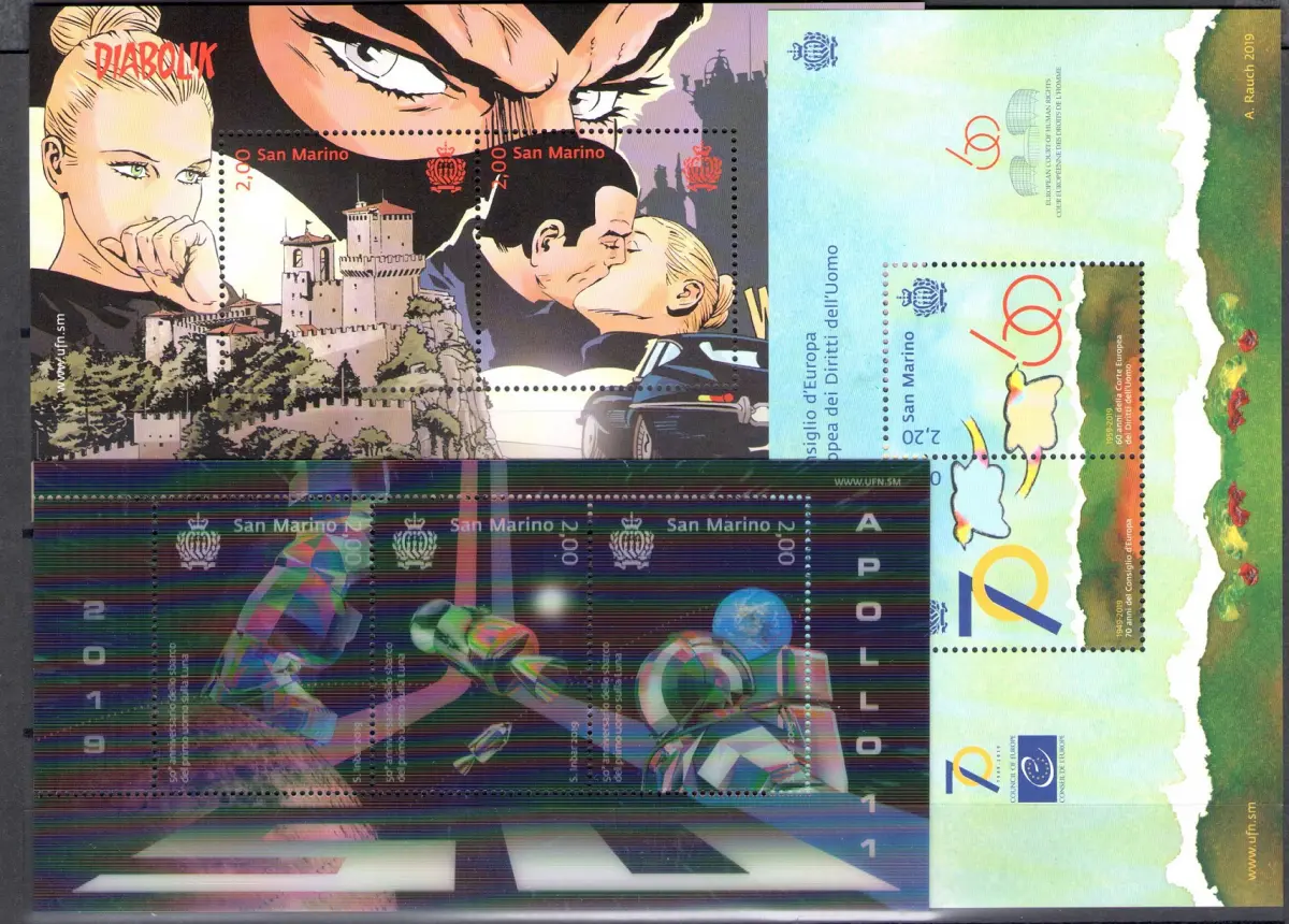 2019 San Marino, postfrisch, kompletter Jahrgang 21 Werte + 6 Zettel - postfrisch ** postfrisch, Vollgummi, einwandfrei.