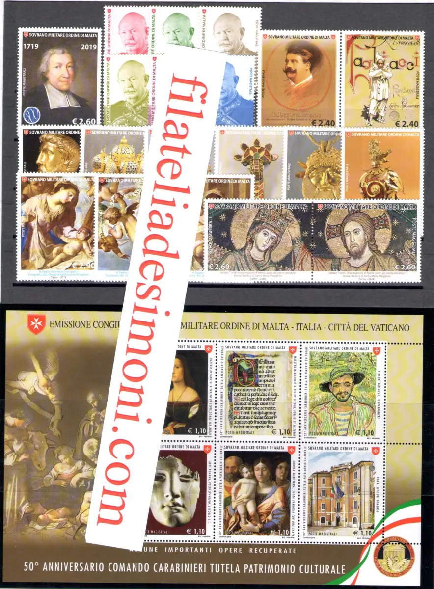 2019 Smom, neue Briefmarken, kompletter Jahrgang 20 Werte + 14 postfrisch ** Mit dem seltenen Carabinieri-Blatt, das gemeinsam mit Italien und dem Vatikan ausgegeben wurde!!!!