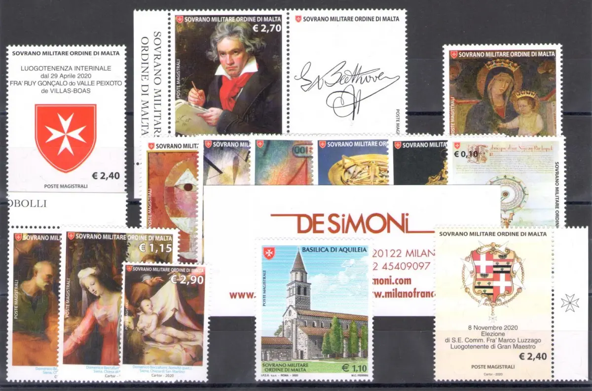 2020 Smom, postfrisch, kompletter Jahrgang 14 Werte + 11 postfrisch ** Mit der seltenen Briefmarke der Basilika von Aquileia