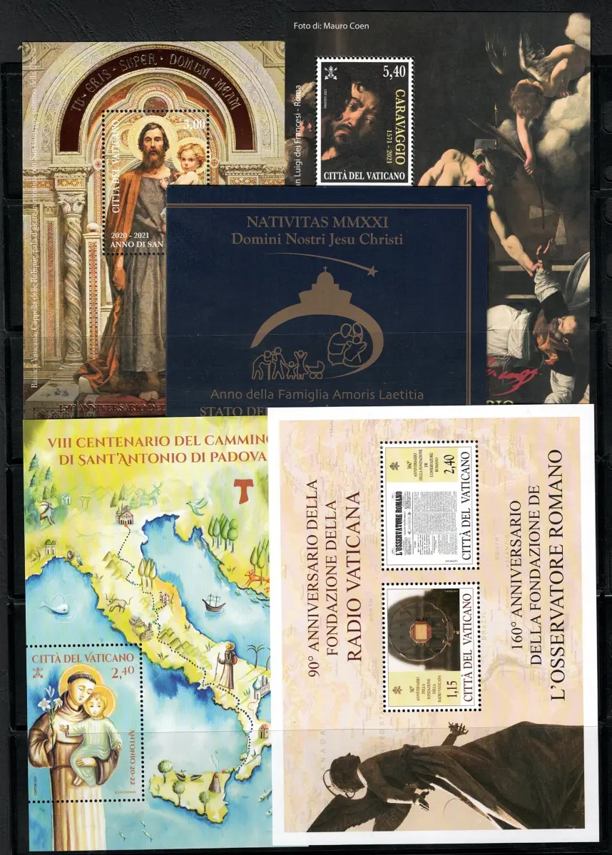 2021 Vatikan, kompletter Jahrgang 23 Werte + 5 Zettel + 1 Booklet - MNH ** SIE ERHALTEN EINE SERIE MIT DEN GLEICHEN EIGENSCHAFTEN WIE DIE GESCANNTE, ABER SICHERLICH NICHT DIE GLEICHE SERIE, DA ES SICH UM EIN MEHRFACHANGEBOT HANDELT.