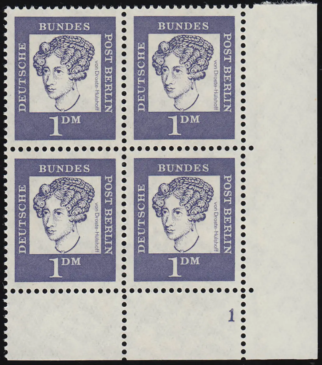 212 Bed. Deutsche 1 DM Eck-Vbl. ur Formnummer FN 1, ungefaltet postfrisch **
