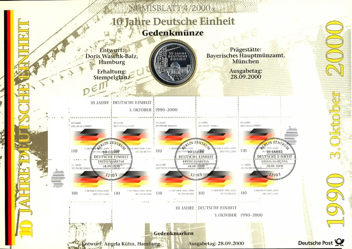 2142 Jahrestag 10 Jahr Deutsche Einheit - Numisblatt 4/2000