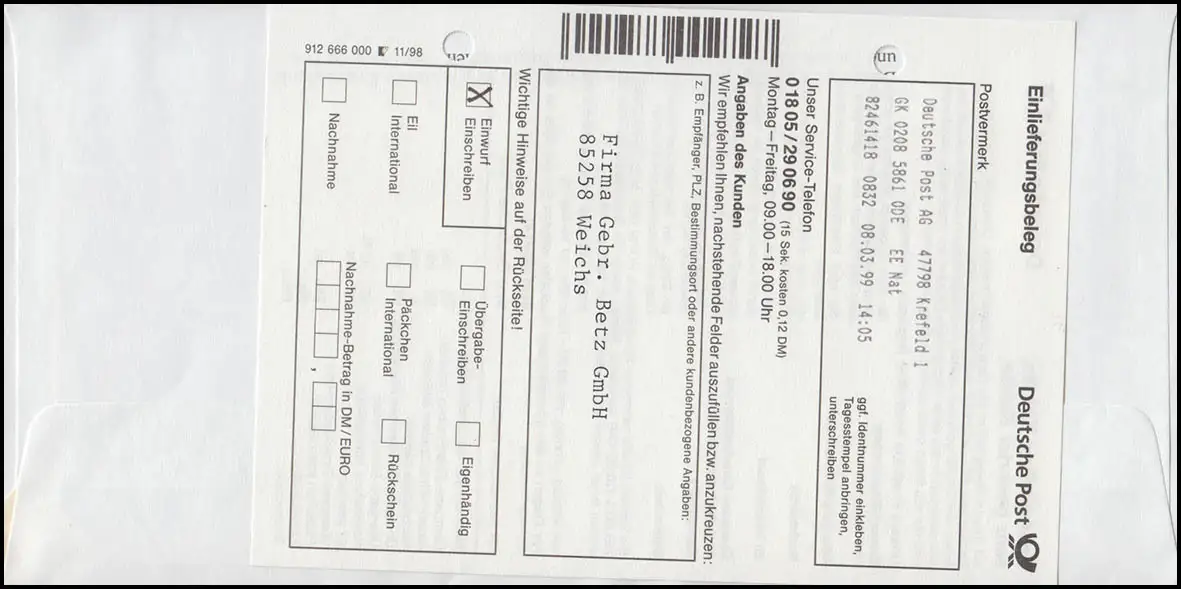 FDC pour ATM Posthorn. Lettre Porto à l'appui comme lettre d'introduction par lettre douce, étiquette noire GK 185-600-299 avec croix impression et logo post-jaune, document de livraison EPOS, codé. Vérification: original Référence de l 'article: 0000000001205>P>Remarque: Cet article n'est disponible qu'une seule fois. Vous recevrez exactement l l\'élément représenté.