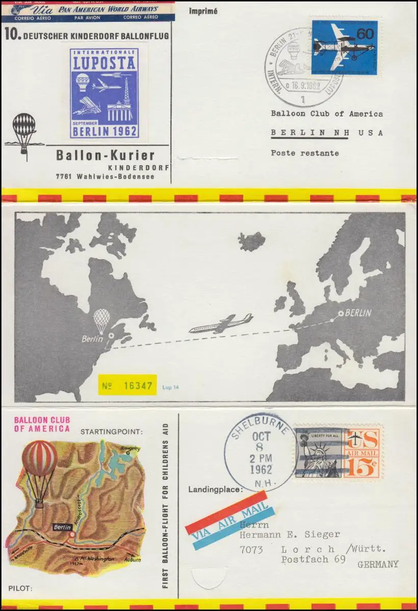 230 Luftpost Faltkarte zur Ballonpost BERLIN / USA + zurück, SSt Berlin 16.9.62