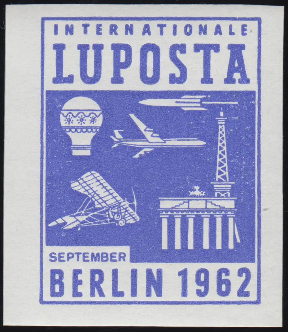 Sonderkarte von der LUPOSTA 1962 in Berlin zum Kinderdorf Ballonflug nach Berlin (USA) mit aufgeklebter blauer Sondervignette. Nach Durchführung des Ballonfluges Rücksendung der Karte nach Deutschland. Schöne Dokumentation, die durch eine postfrische Sondervignette ergänzt wird.