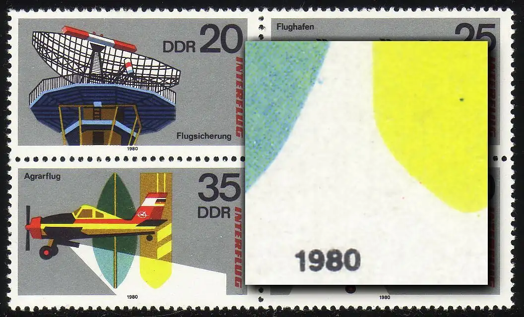2516-2519 Bloc quatre INTERFLUG avec PLF en 2518 points à la feuille et à l'épi, **