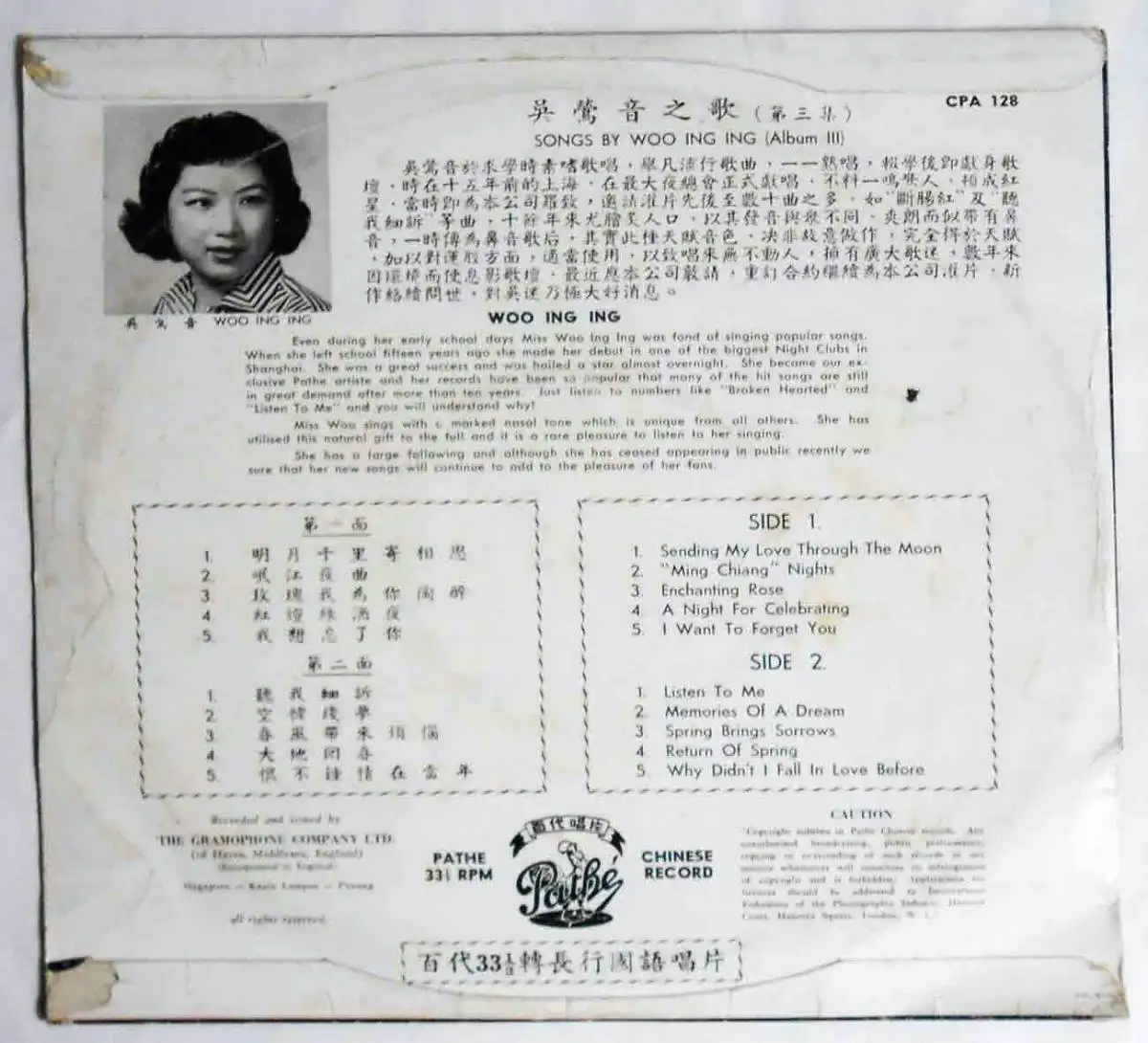 25cm LP Woo Ing Ing: Songs by Woo Ing Ing Vol. III (Pathé CPA 128) China