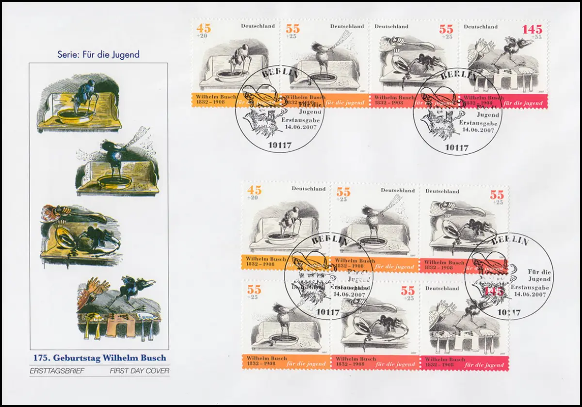 2606-2609 Bl.71 Wilhelm Busch - set de compression avec 6 ZD + 4 Ezm sur 2 FDC