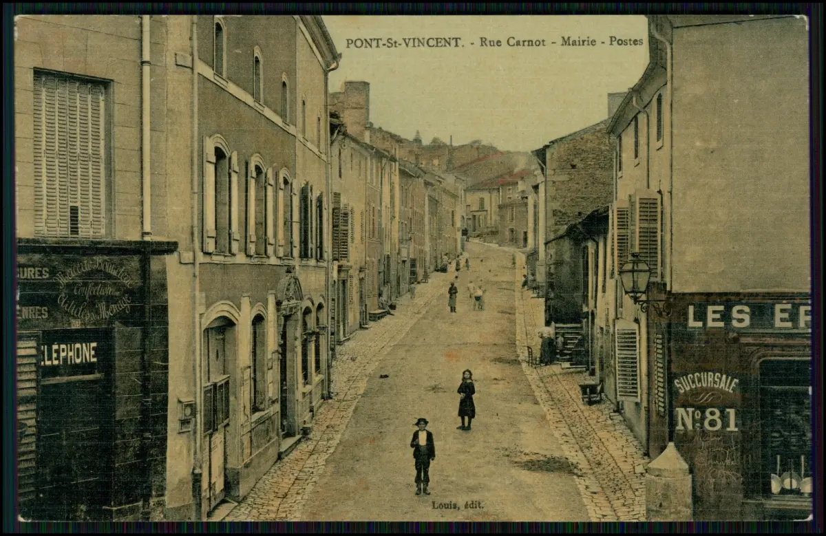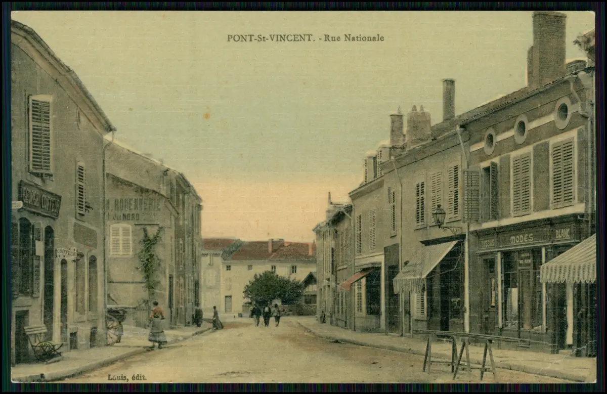 Pont-Saint-Vincent liegt im Département Meurthe-et-Moselle (Region Grand Est) in unmittelbarer Nähe zu Nancy. Die Rue Nationale war Hauptstraße mit Handel, Dienstleistungen und Cafés – heute weitgehend verändert.