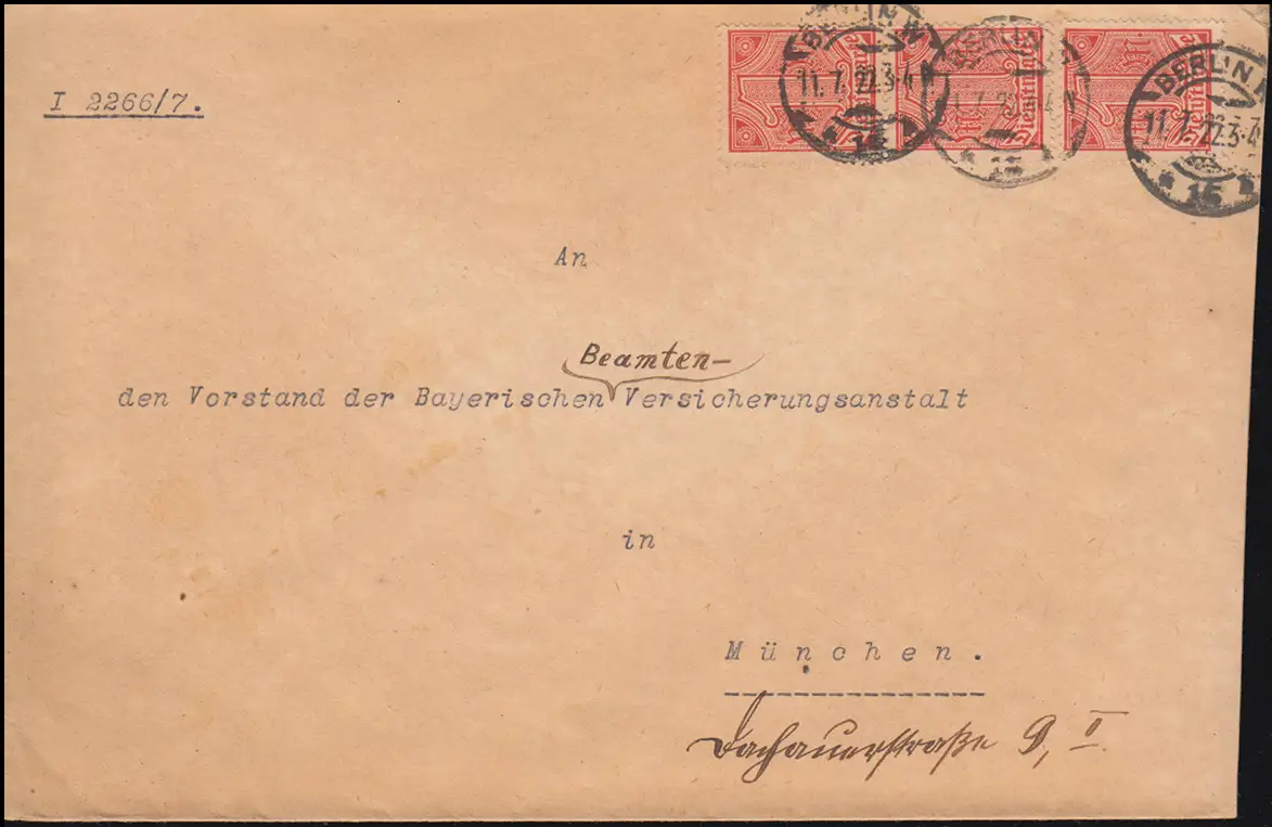 Envoi de lettres à caractère multiple à Berlin, sur le site de la société de transport à longue distance, avec cachet "Reichs surveillanceamt für Privatversicherung" au Directoire de Bayerisches Funktions-versorgungsanstalt à Munich. N° de catalogue: D30 Audit: original Référence produit: 00000000020814>p>Remarque: Cet article n'est disponible qu'une seule fois. Vous recevrez exactement l'article représenté.
