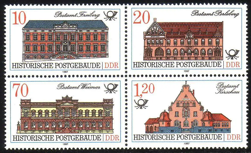 3067-3070 Bâtiment postal 1987, Quadruple, ** frais de port