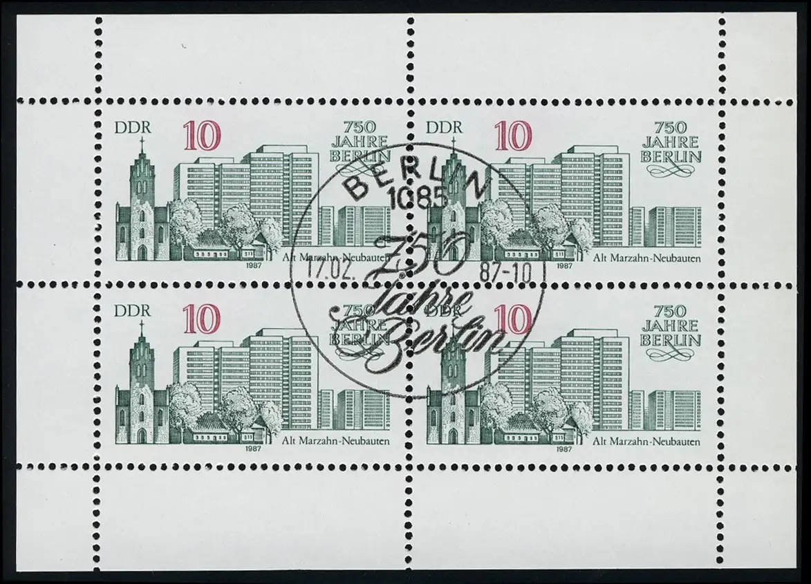 3076 Marzahn-Kleinbuch Berlin 4x 10 Pf 1987, ESSt Berlin