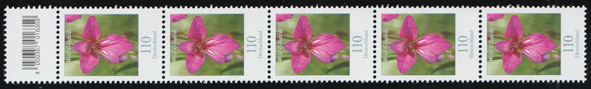 3471 Gladiole sauvage 110 centimes, bandes de 5 bandes avec champ de code, PETITES N° **