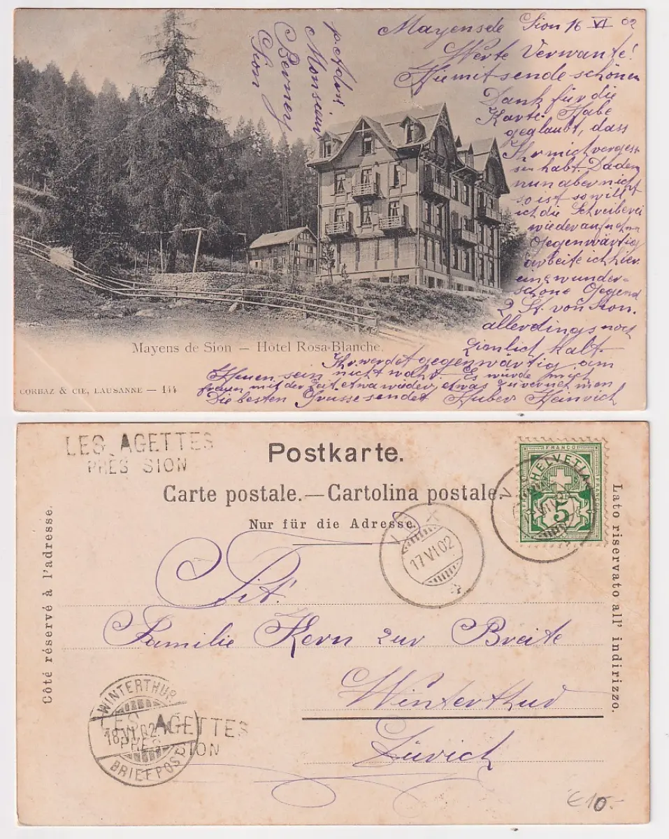 gelaufen mit Stationsstempel der Bahn Les Agettes Près Sion guter Zustand, gering fleckig, siehe Bild