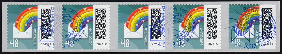 3743 Lettre arc-en-ciel 48 sk de 500, 5 bandes GERADE numéro, EV-O Bonn