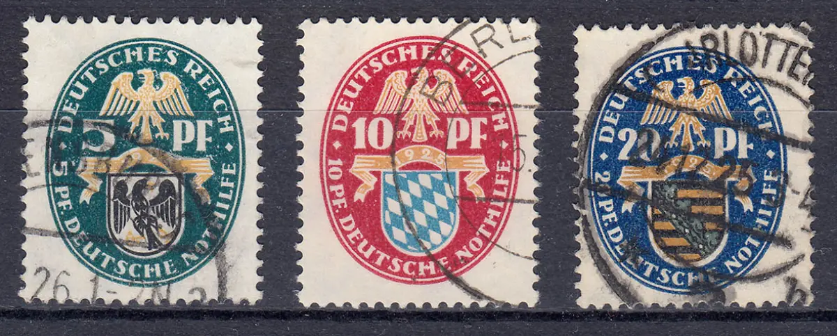 375-377 Nothilfe/Wappen 1925, kompletter Satz gestempelt O