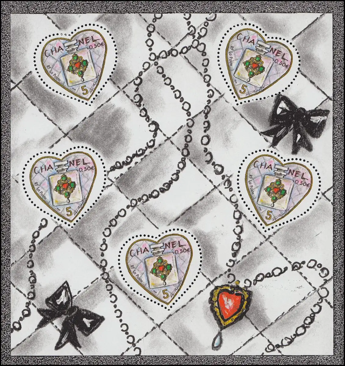 3774 Marque de salutation Saint Valentin Parpourm Chanel - Petit arc I avec 5 timbres **