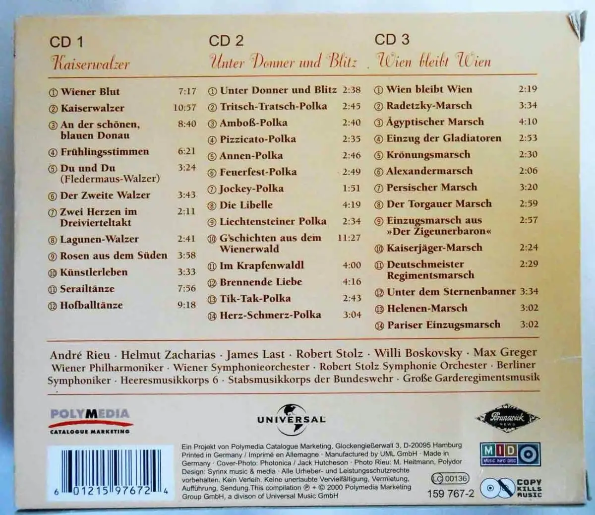 3CD Box, Universal Records, mit André Rieu, James Last, Helmut Zacharias, Robert Stolz, Willi Boskovsky, Max Greger, Berliner Symphoniker usw...