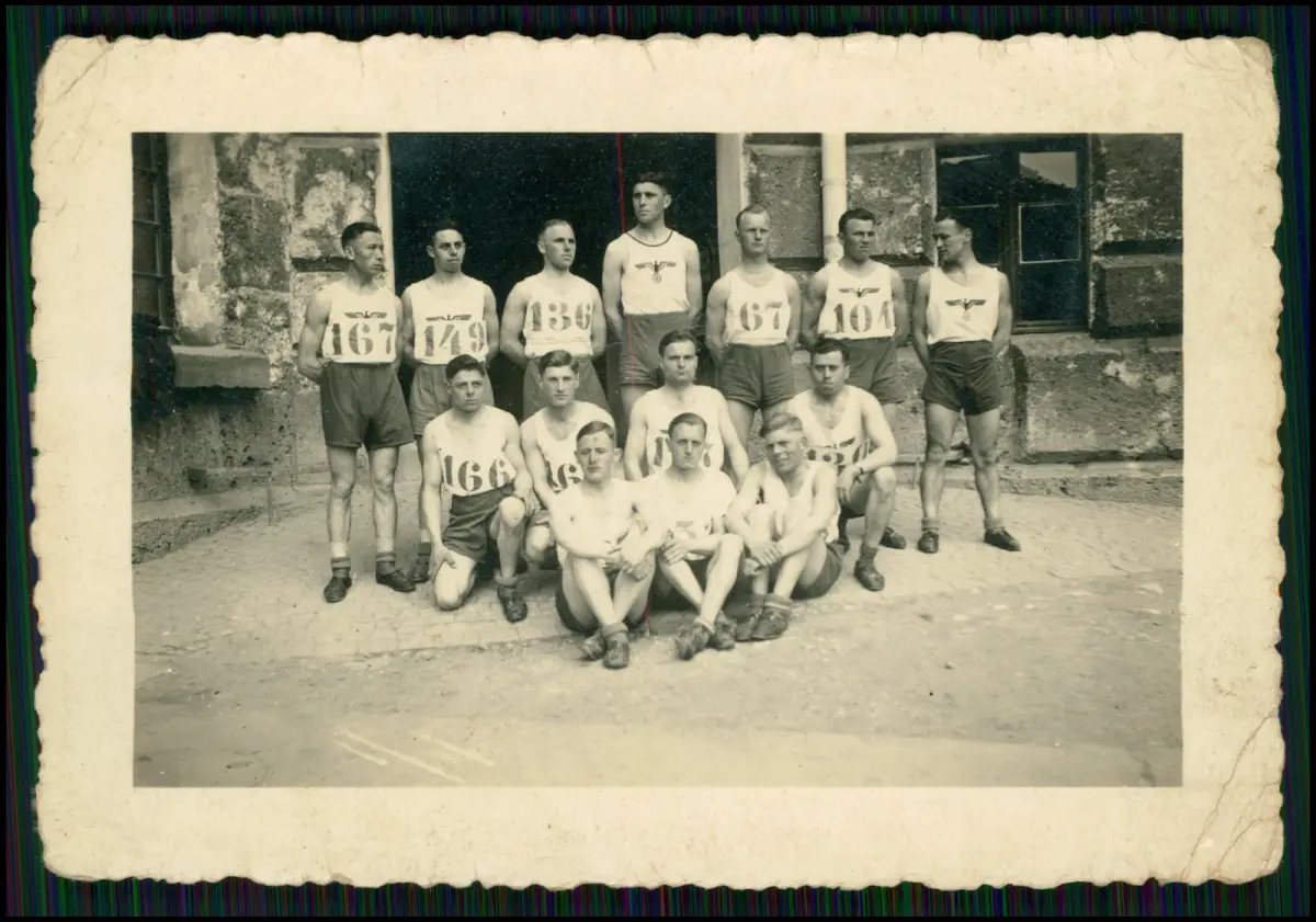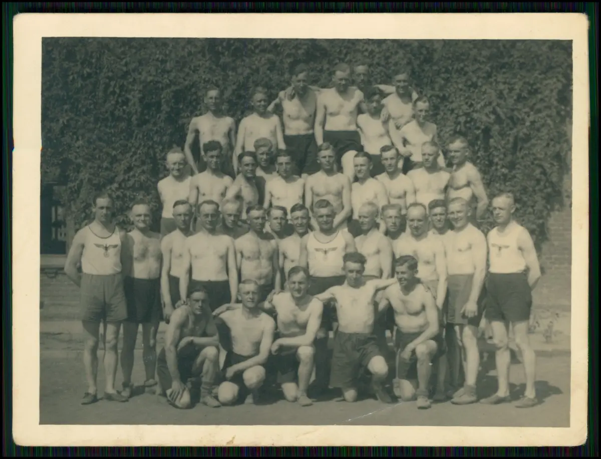 3x Foto - Wehrmacht Sportgruppe - Soldaten im Trikot Turnhemd Badehose ....