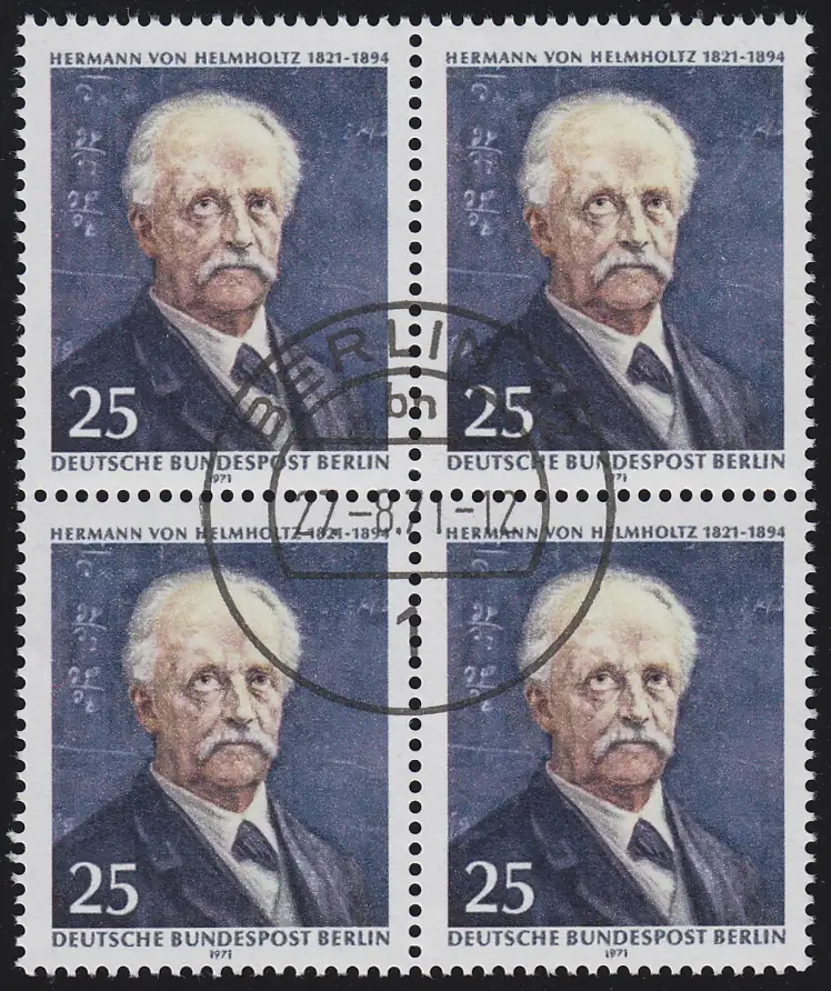 401 Hermann von Helmholtz - Quadraerblock avec le cachet du premier jour BERLIN 27.8.71