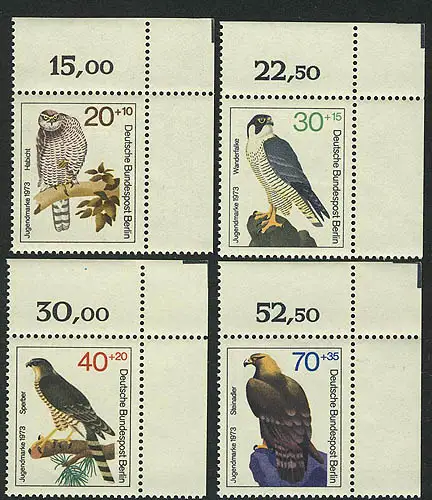442-445 Jeunes oiseaux de proie 1973, coin o.r. phrase **
