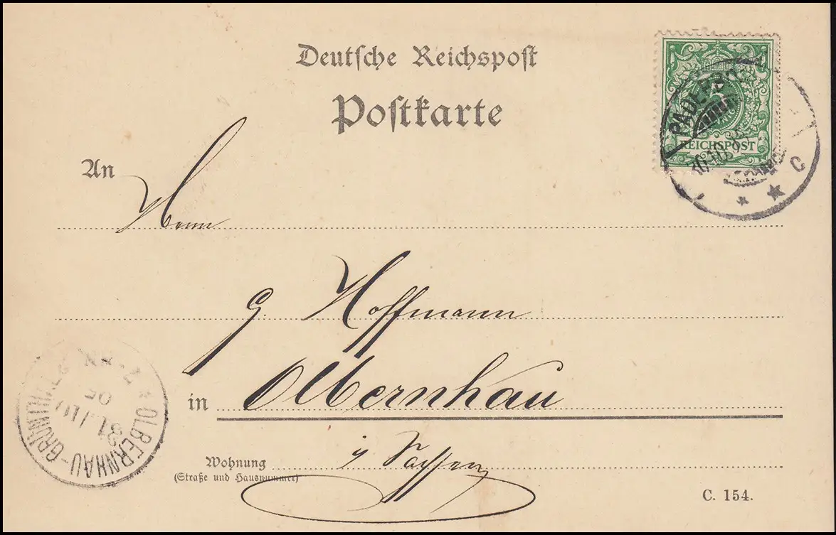 46 paragraphe 5 Pf sur carte postale PADERBORN 30.10.1895 vers OLBERNHAU-GRUNTHAL 31.10.