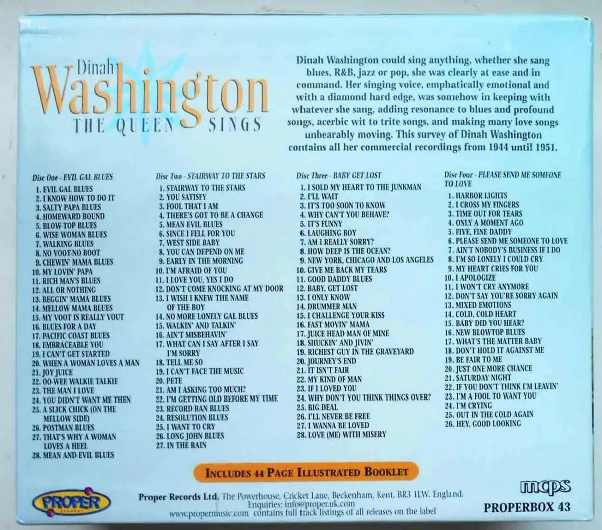 4CD Box Dinah Washington: The Queen Sings (Proper) 2002