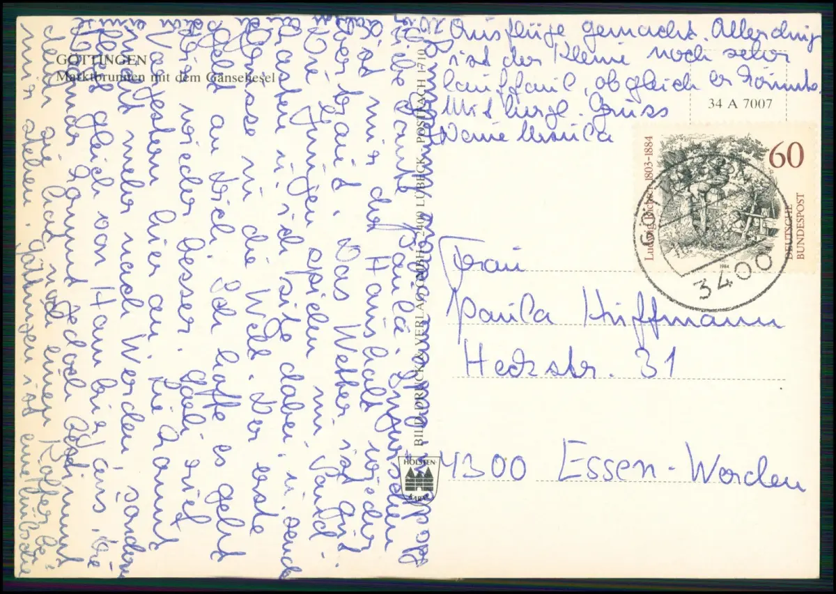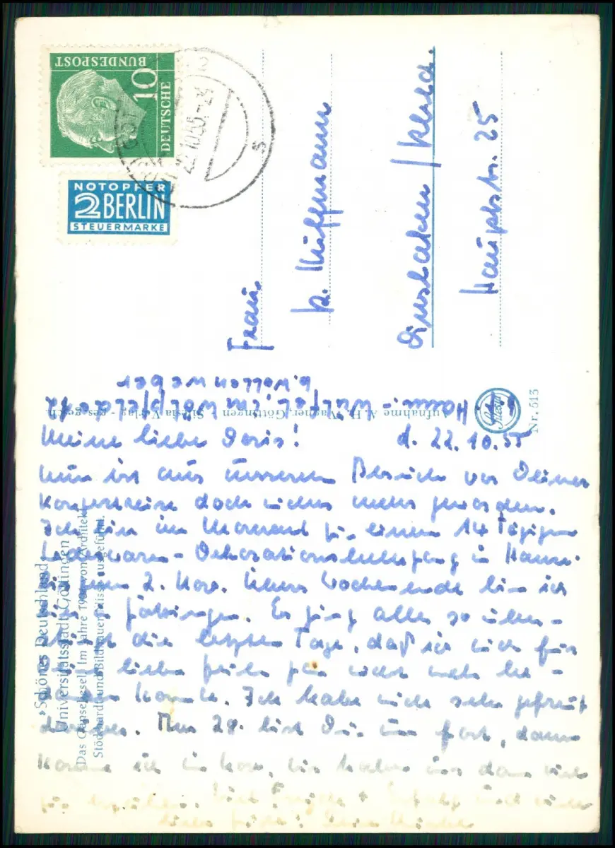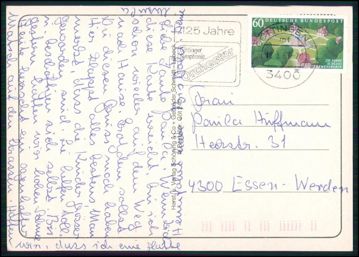 Rückseite / Besonderheiten Gelaufen nach Essen-Werden Handschriftliche Nachricht vorhanden Poststempel: 1971, Marke mit Ludwig Richter Hersteller: Lübeck Kolor-Bilddruck Verlag