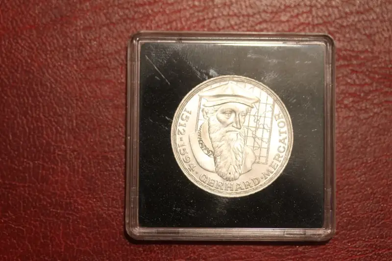 5 DM Silbermünze Gedenkmünze Gerhard Mercator, in besonderer Kapsel (siehe Artikelbeschreibung), Ausführung stg
