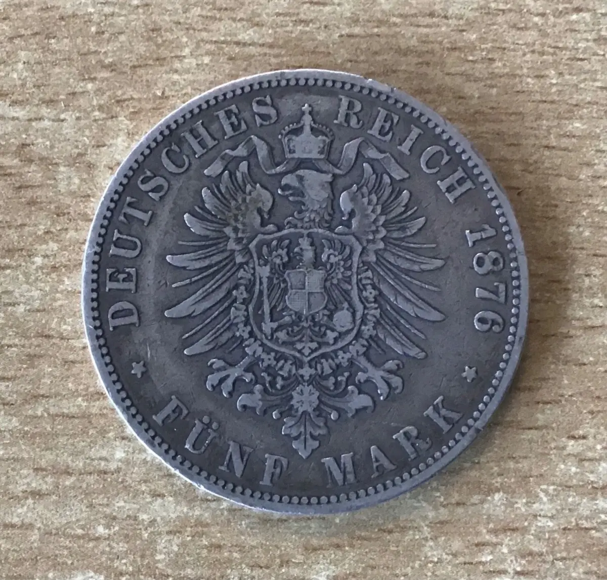 5 Mark 1876 J Stadtwappen Hamburg Silbermünze