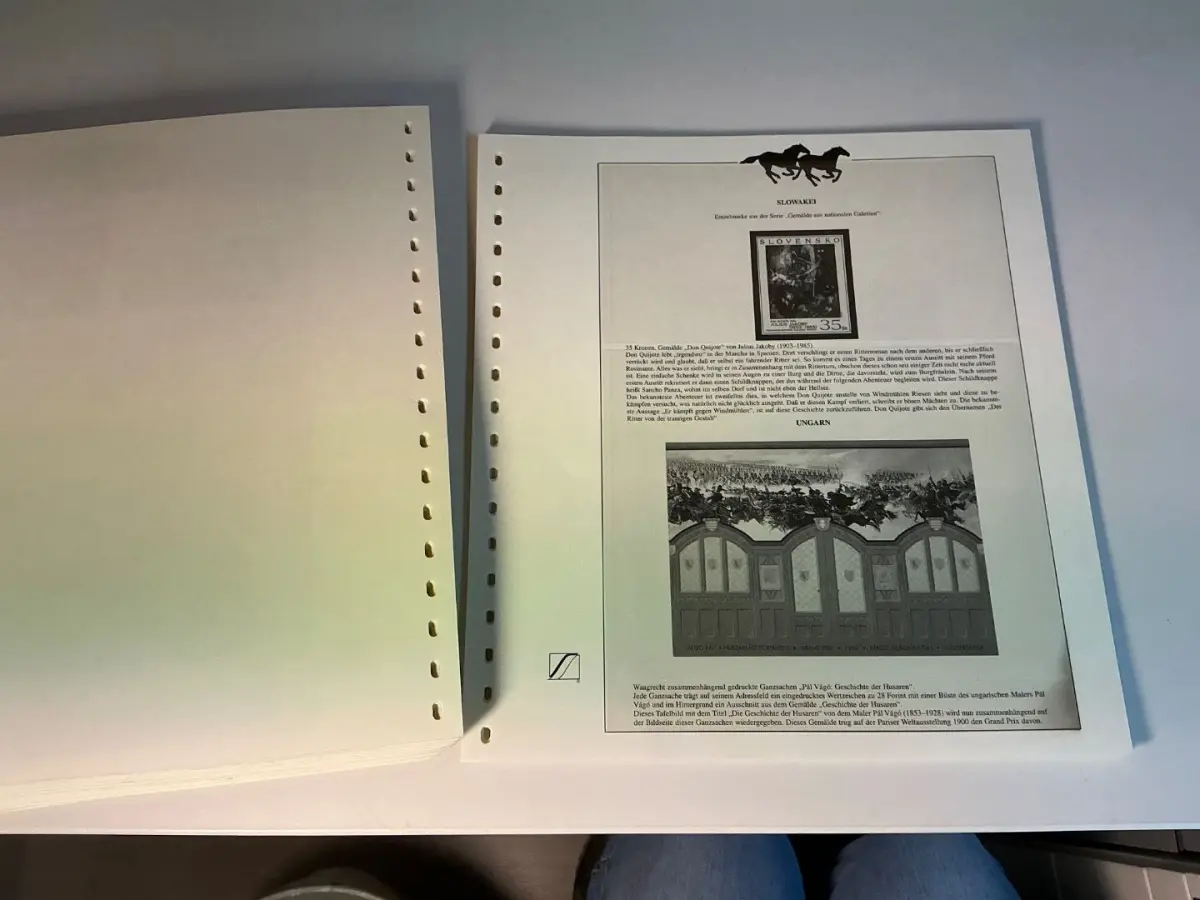 leere gut erhaltene Blätter mit Gebrauchsspuren, verschiedene Streifen wie angefallen, alle mit Aufdruck Pferde