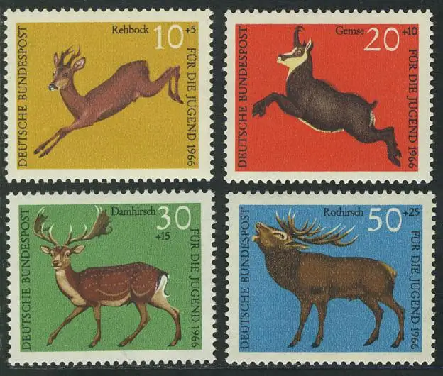 511-514 Jeunes Gibier sauvage 1966: Reh Gemse Damhirsch Rothirsch, phrase ** frais de port