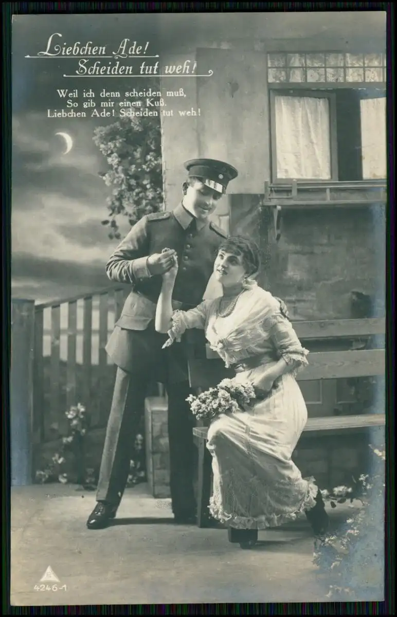 5x AK Serie - Liebchen Ade Scheiden tut - Soldat tröstet Mädchen -1918 Feldpost